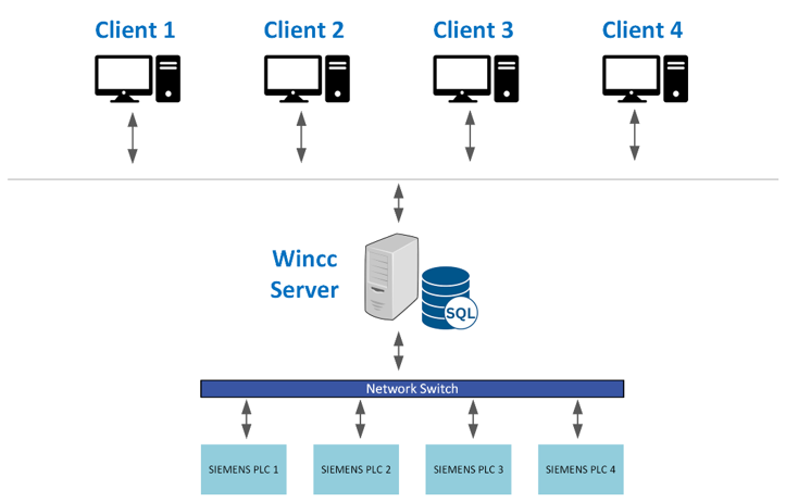 The customer intends to upgrade their existing standalone WinCC SCADA system to a modern and scalable Server–Client architecture.