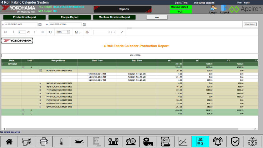 Storing and managing production recipes for the calender process Capturing and analyzing critical process parameters for quality assurance Statistical process control charts Reports
