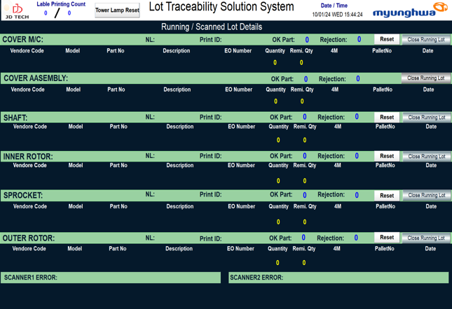 - Barcode generated for each lot/part received from vendors and added to inventory